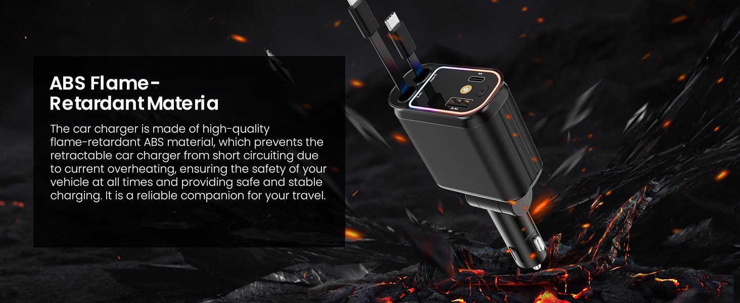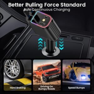 The adjustable 180-degree charging plug and secure car lighter adapter make this car charger highly user-friendly. The flexible plug provides easy access, even on bumpy roads, while the sturdy adapter ensures a stable connection without interruptions. This design enhances convenience for road trips, daily commutes, and outdoor adventures, making it an essential accessory. Stay powered and connected wherever your journey takes you with this reliable car charger.