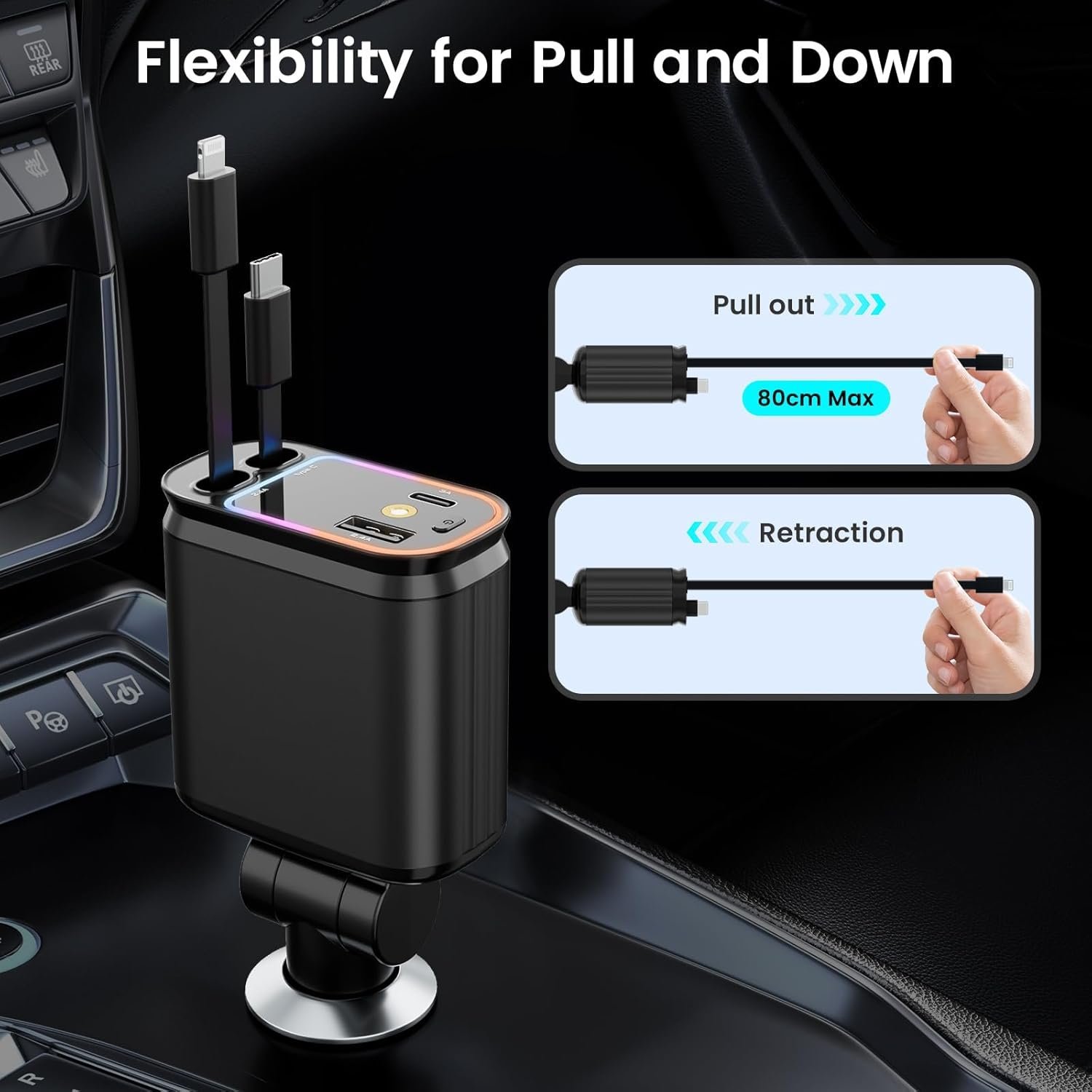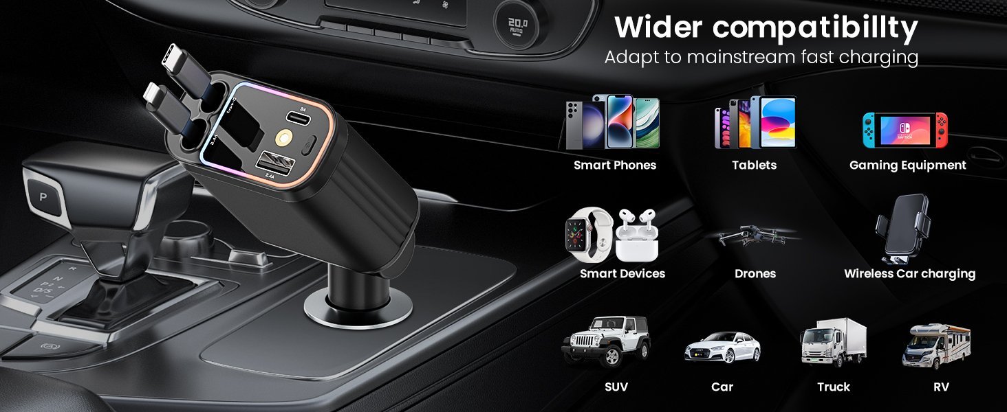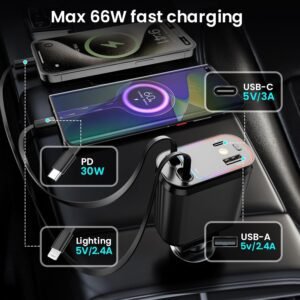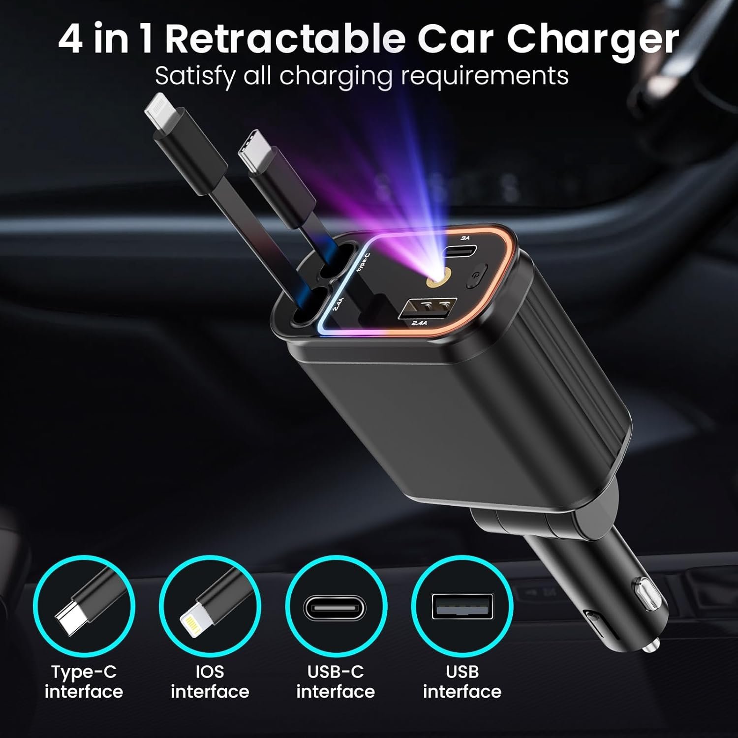 Chihod 4 in 1 Retractable Car Charger with Starlight