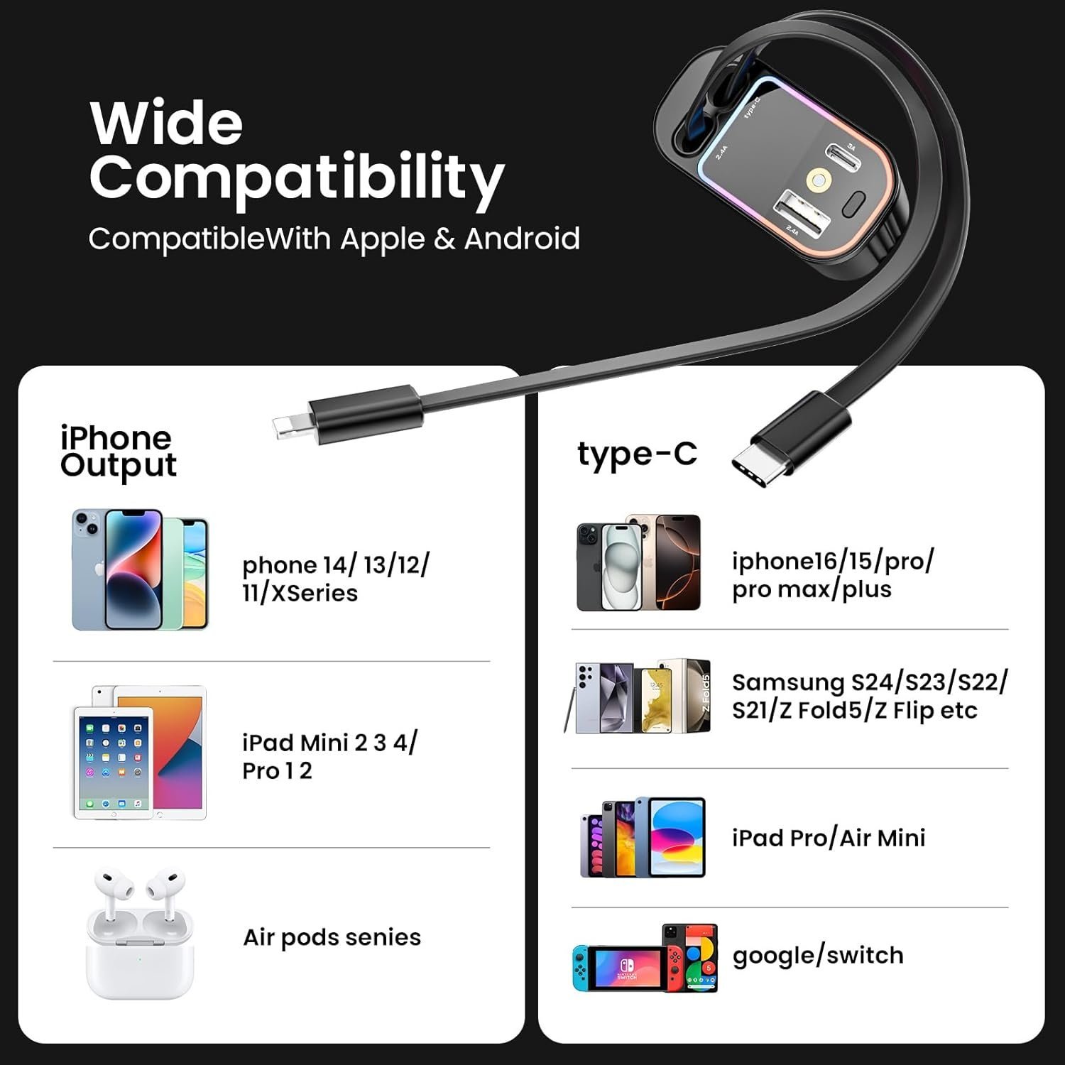 Compatible con muchos modelos de m¨®viles Apple y USB-C, muy vers¨¢til.