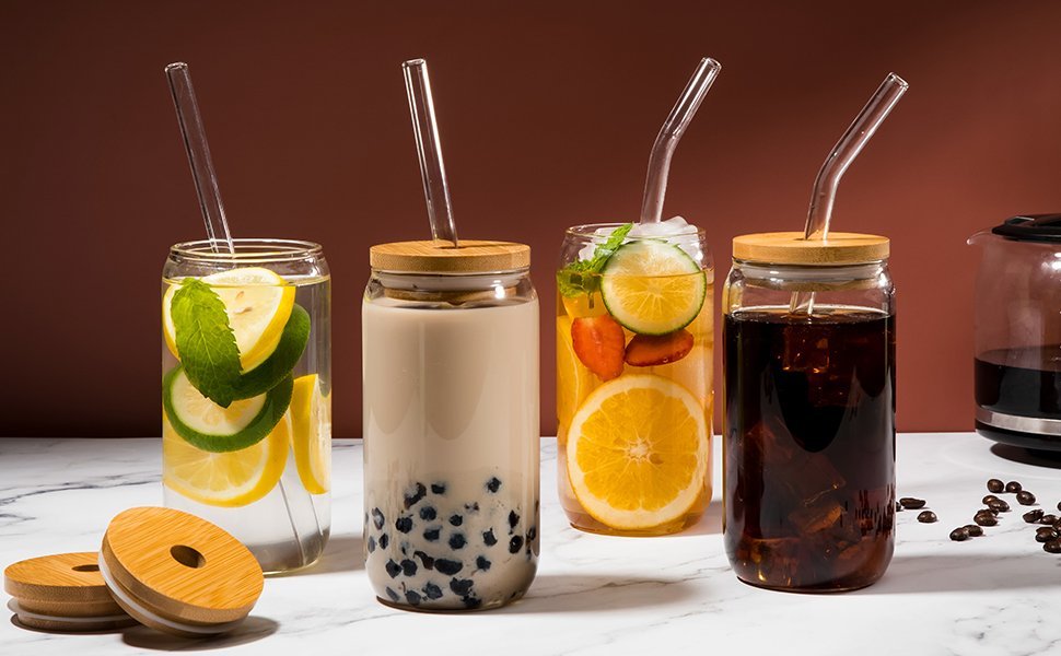 Esta taza de vidrio súper bonita y única es absolutamente perfecta para cualquier bebida como café helado, cerveza, cócteles, refrescos, té helado, jugo, batidos, leche y té con leche, y es muy elogiado y amado por familias, restaurantes, bares y cafeterías.