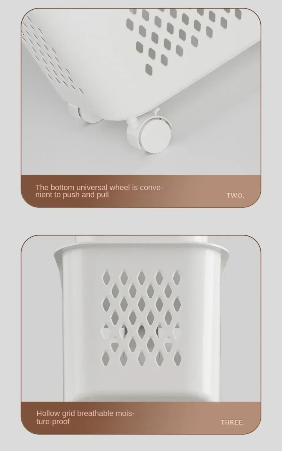 Este carrito multifuncional para la ropa sucia está hecho de material PP de alta calidad, que es muy duradero y resistente, sin olor y no es fácil de deformar.Diseño de rodillo universal, equipado con 4 360° Poleas giratorias, se pueden mover libremente y son fáciles de operar e instalar.Las cestas de almacenamiento están diseñadas con asas de transporte en ambos lados para un levantamiento estable, lo que las hace más cómodas y fáciles de usar.Son versátiles y se pueden colocar en capas para almacenamiento y clasificación.Apto para todos los lugares interiores, dormitorio, baño, cocina, estudio.Puede organizar perfectamente todos los artículos.