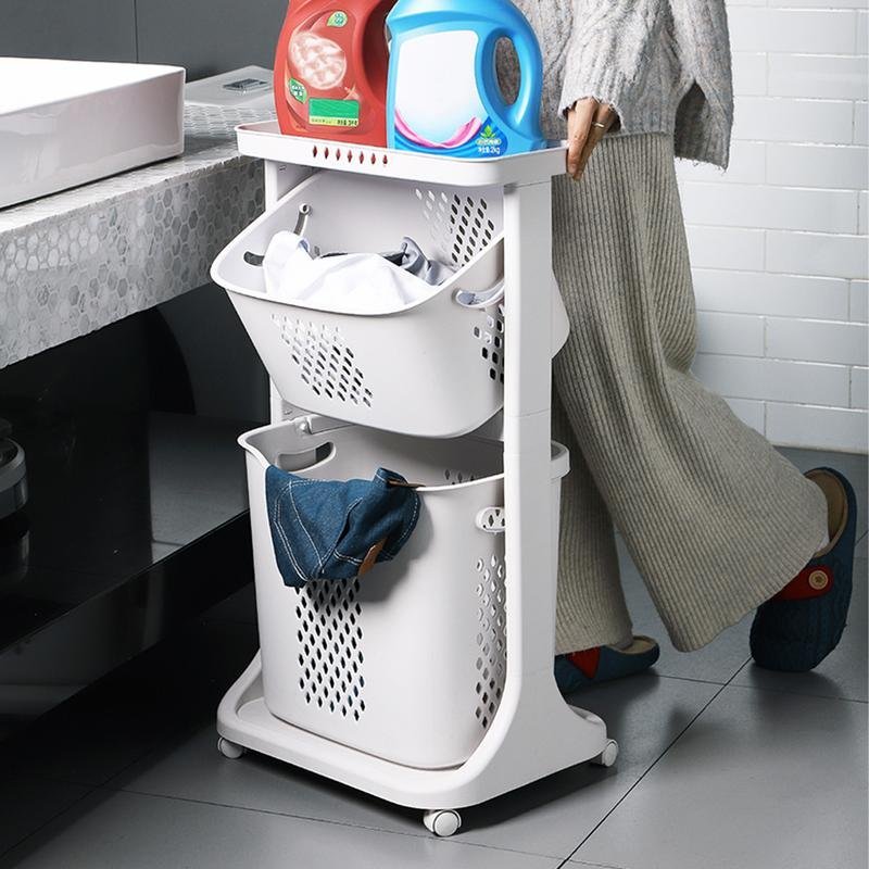 Livingandhome Laundry Basket – 2/3-Tier Rolling Clothes Organizer with Wheels for Bathroom Storage